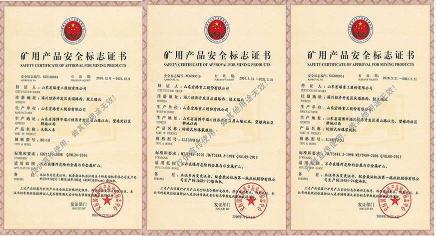 公司擁有整車煤安證46項(xiàng),礦安證27項(xiàng),零部件煤安證38項(xiàng)